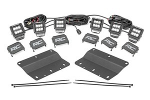 Light Up the Night. Looking to add some serious lighting power to your Bronco? Look no further than Rough Country's Bronco Triple Cube Fog Light Mount Kit! This handy kit lets you fit an impressive three sets of Rough Country's 2-in cube lights on your factory steel bumper, increasing your lighting power and visibility during nighttime adventures. Each light contains six 3-watt high-intensity Cree LEDs, providing a brighter, more focused beam of light that will help you navigate any terrain with confidence. Made to Last. The IP67 waterproof rating ensures that these lights can withstand the harshest conditions you can throw at them, from the mud and dirt of off-road trails to the concrete and asphalt of the city streets! The included LED lights produce an incredible 14,000 lumens, making it easy to see in even the darkest conditions. Additionally, the Moisture Breather technology reduces moisture build-up behind the lens, making sure your lights always perform at their best. So, whether yo're driving through thick fog or inching your way down a dark trail, you can rest assured that you'll have the visibility you need. Installation. This 100% bolt-on kit discreetly mounts into your OEM bumper, right in the factory fog light location. The brackets are hidden from view for a clean and flush factory-looking install. But do't let the sleek design fool you - this thing is built tough! Our kit also includes premium, flat-wound wiring harness with an on/off switch. No cutting or drilling is required, so you can get this installed and hit the trail in no time flat. Limited Lifetime Replacement Warranty. Rough Country's products are backed with a limited lifetime replacement warranty towards manufacturer defects. As such, the product is protected from structural and workmanship damage after the date of purchase. With our industry-leading warranty, give yourself peace of mind when using Rough Country's products!